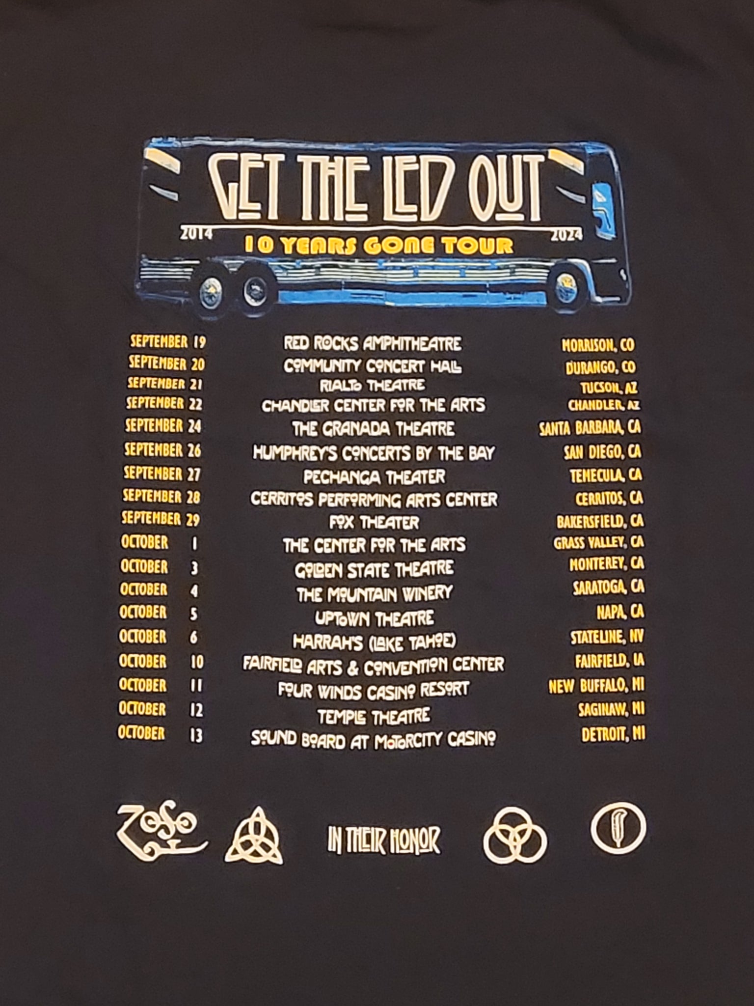 Featuring the full band, this shirt highlights the 2024 Fall Tour with the classic bus decal on the back.